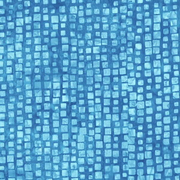 blautürkiser Batikstoff von Hoffman, Motiv Quadrate: o,5 - 1 cm, Farben hellblau-türkis, 100% Baumwolle, Stoffbreite: 110 cm