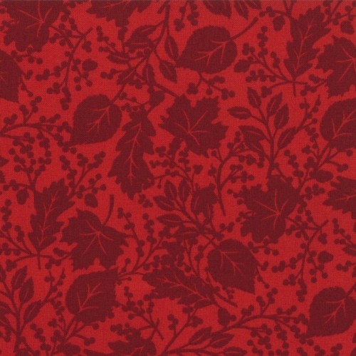 roter Baumwollstoff von Moda, Motiv: Zweige, Blätter, Farben: rot, dunkelrot